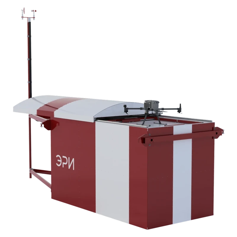 Дронопорт ЭРИ М300 - это полностью автономная, предназначенная для всепогодной эксплуатации, станция для зарядки дрона, работающая в режиме 24/7. Оснащена роботом для замены батарей БПЛА, встроенной метеостанцией и системой видеонаблюдения. Применяется с промышленными БПЛА взлётной массой до 10 кг, например, DJI Matrice 300 RTK или ГЕОСКАН 401.